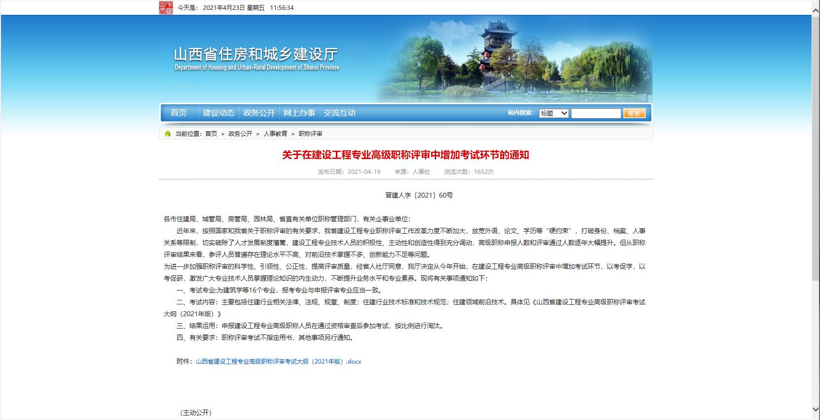 查看詳細關于在建設工程專業(yè)高級職稱評審中增加考試環(huán)節(jié)的通知發(fā)布日期:2021-04…